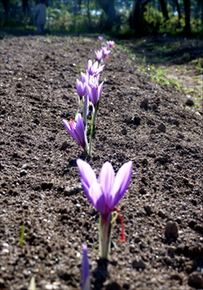 De mi-septembre à mi-novembre, apparaissent les fleurs. Evènement magique, la fleur de crocus sort de terre du jour au lendemain, accompagné ou non du feuillage. C’est le moment de la cueillette. Les fleurs sont ramassées rapidement car elles ne vivent en général 48H00.